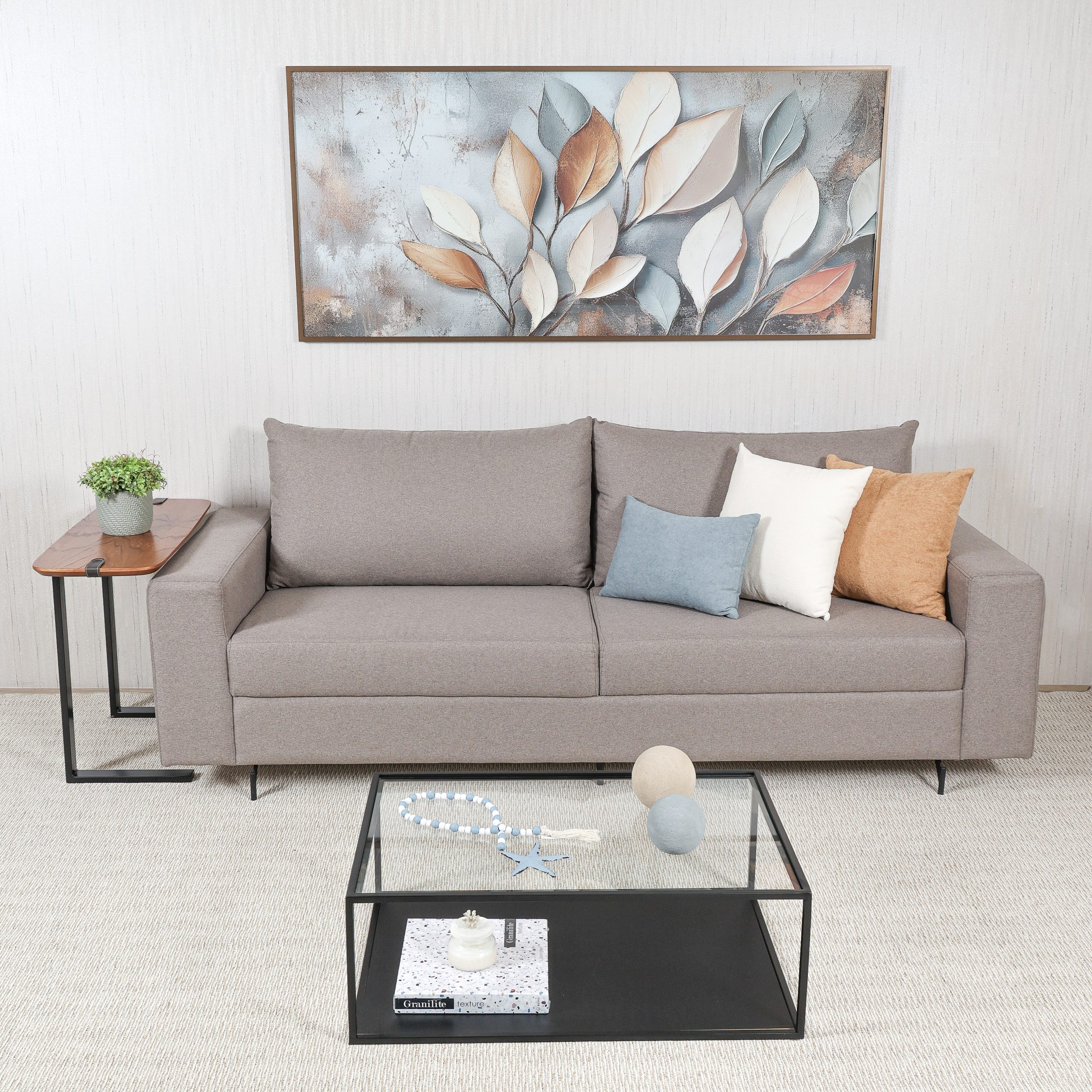 • Encosto com almofadas soltas grandes em fibra siliconizada;