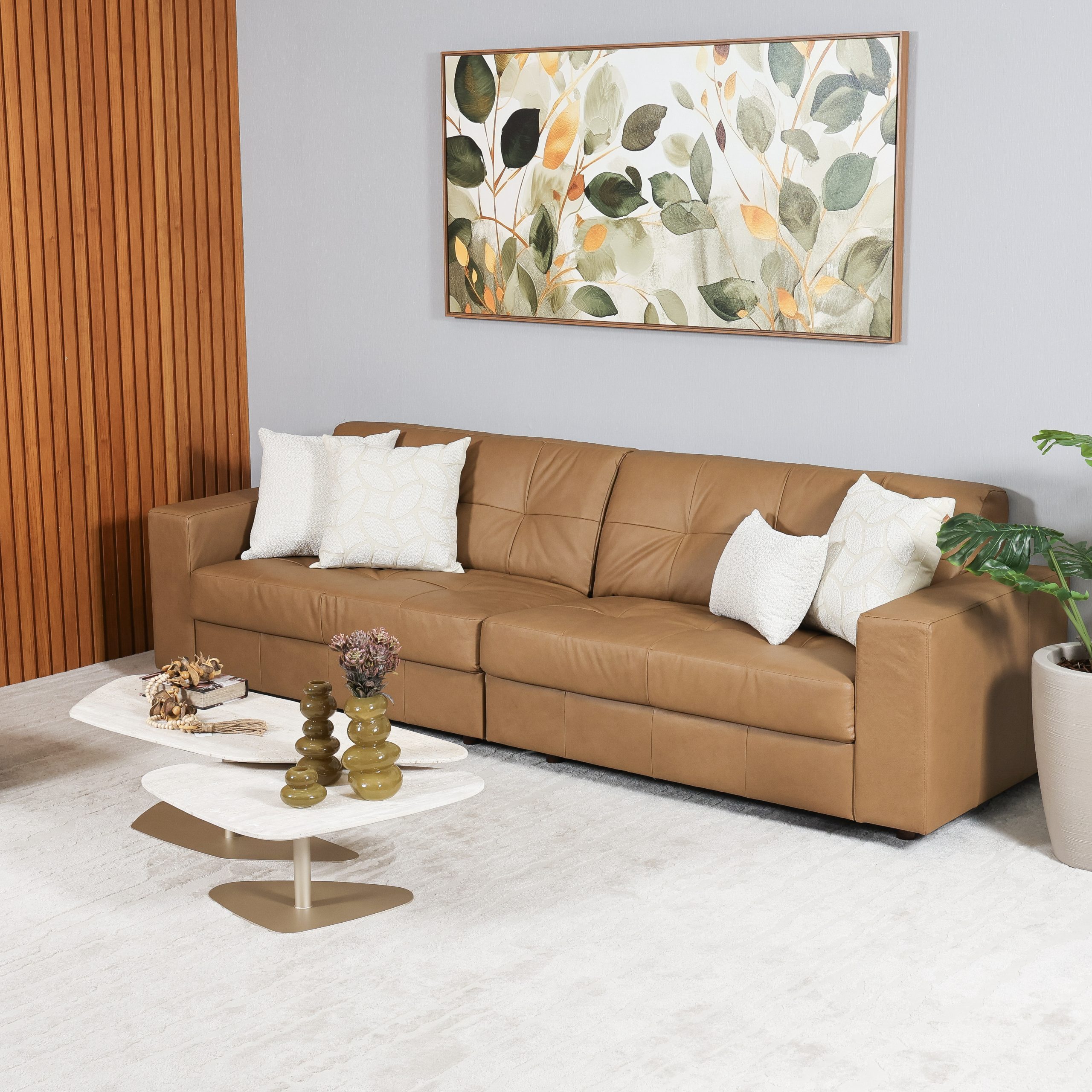 SOFA CARTAGO 2,78M COURO CASTANHO